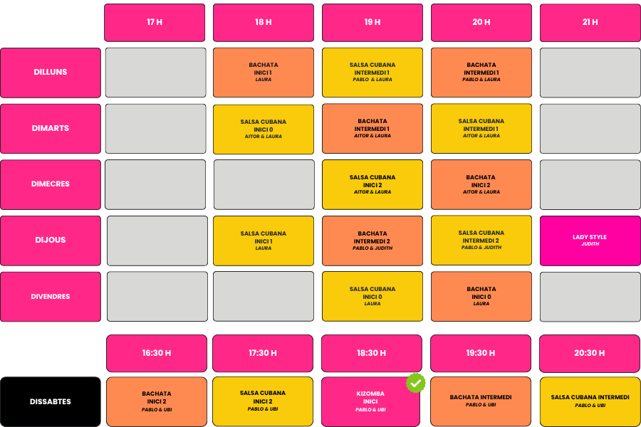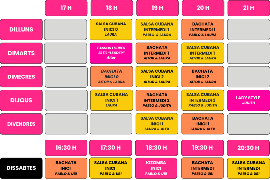 • Les classes dels dissabtes i les de dilluns a divendres són quotes independents. No es poden barrejar.